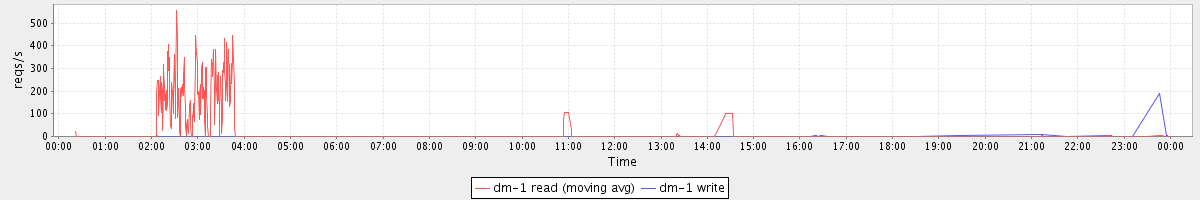 avg(dm-1 read) = 565.09 avg(dm-1 write) = 0.36