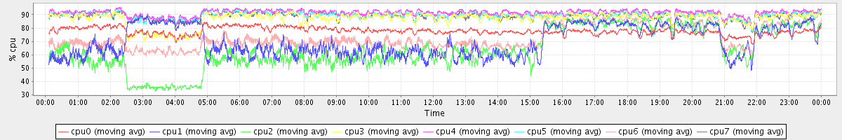 avg(cpu0) = 77.72 avg(cpu1) = 70.00 avg(cpu2) = 63.79 avg(cpu3) = 87.14 avg(cpu4) = 91.40 avg(cpu5) = 89.64 avg(cpu6) = 72.75 avg(cpu7) = 89.02