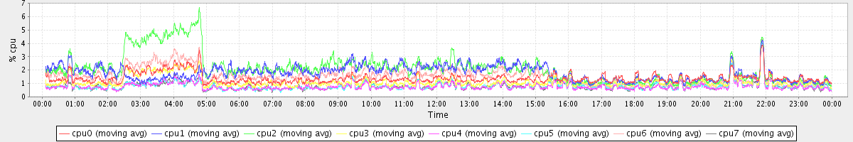avg(cpu0) = 0.08 avg(cpu1) = 0.06 avg(cpu2) = 0.11 avg(cpu3) = 0.01 avg(cpu4) = 0.00 avg(cpu5) = 0.00 avg(cpu6) = 0.07 avg(cpu7) = 0.00