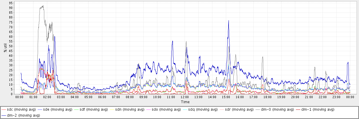 avg(sdc) = 3.18 avg(sde) = 6.18 avg(sdf) = 3.18 avg(sdn) = 6.18 avg(sdo) = 3.19 avg(sdq) = 6.14 avg(sdr) = 3.16 avg(dm-0) = 11.73 avg(dm-1) = 0.92 avg(dm-2) = 18.06