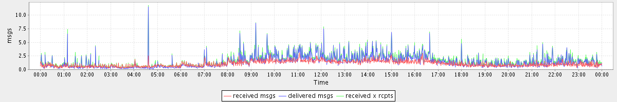 avg(received msgs) = 1.07 avg(delivered msgs) = 1.39 avg(received x rcpts) = 1.67