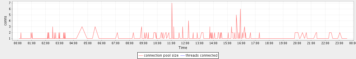 avg(connection pool size) = 0.36 avg(threads connected) = 0.00