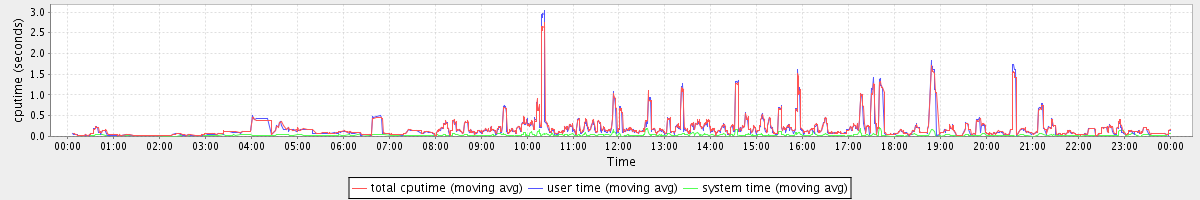 avg(total cputime) = 0.14 avg(user time) = 0.13 avg(system time) = 0.01