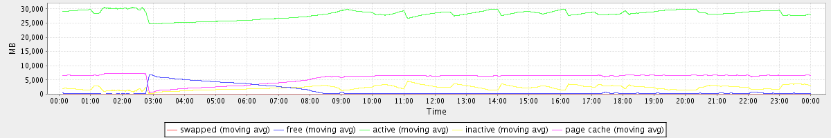 avg(swapped) = 0.25 avg(free) = 1063.69 avg(active) = 28163.48 avg(inactive) = 2250.24 avg(page cache) = 5757.52