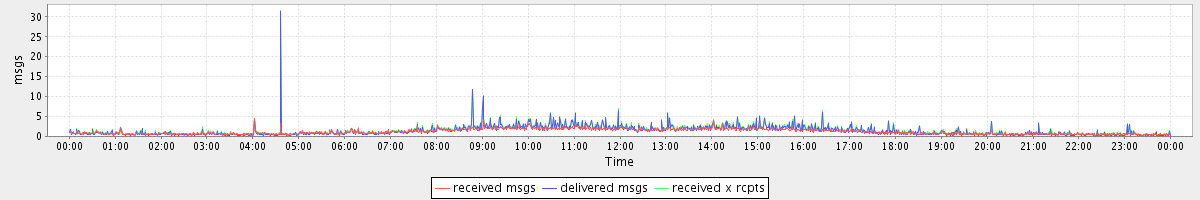 avg(received msgs) = 1.16 avg(delivered msgs) = 1.37 avg(received x rcpts) = 1.58