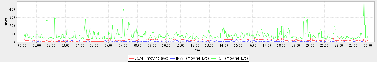 Host zm09.stanford.edu: Mailboxd: Response Time by Client Protocol