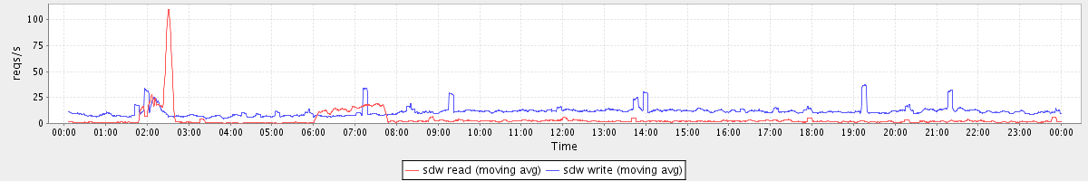 avg(sda read) = 0.67 avg(sda write) = 3.36