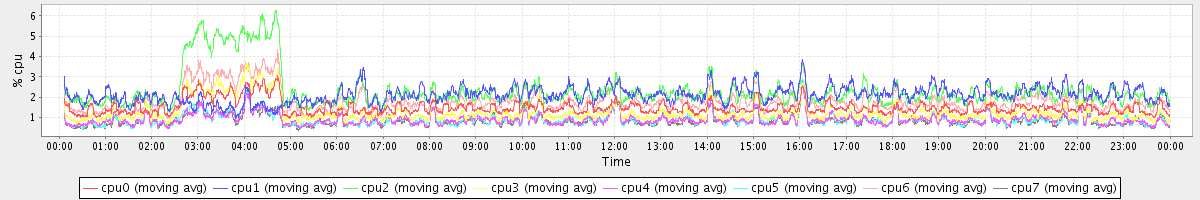 avg(cpu0) = 0.11 avg(cpu1) = 0.08 avg(cpu2) = 0.11 avg(cpu3) = 0.01 avg(cpu4) = 0.00 avg(cpu5) = 0.00 avg(cpu6) = 0.08 avg(cpu7) = 0.00