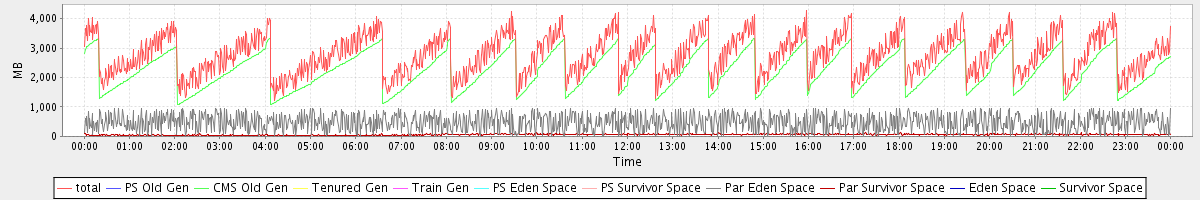 avg(total) = 2779.89 avg(PS Old Gen) = 0.00 avg(CMS Old Gen) = 2238.22 avg(Tenured Gen) = 0.00 avg(Train Gen) = 0.00 avg(PS Eden Space) = 0.00 avg(PS Survivor Space) = 0.00 avg(Par Eden Space) = 480.28 avg(Par Survivor Space) = 61.40 avg(Eden Space) = 0.00 avg(Survivor Space) = 0.00