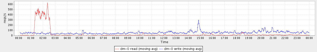 avg(dm-1 read) = 14.78 avg(dm-1 write) = 0.06