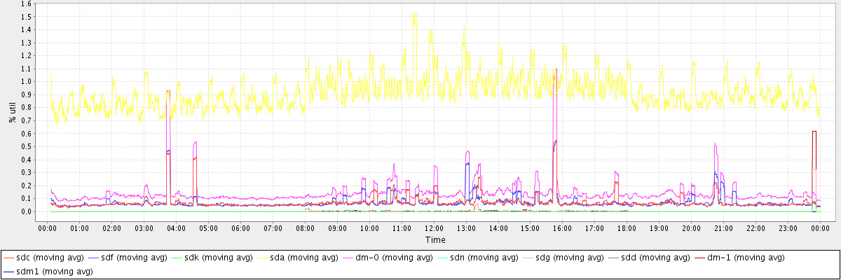 avg(sdc) = 0.07 avg(sdf) = 0.07 avg(sdk) = 0.00 avg(sda) = 0.92 avg(dm-0) = 0.15 avg(sdn) = 0.00 avg(sdg) = 0.00 avg(sdd) = 0.00 avg(dm-1) = 0.00 avg(sdm1) = 0.00