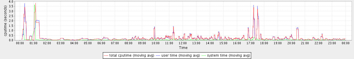 avg(total cputime) = 0.15 avg(user time) = 0.14 avg(system time) = 0.02