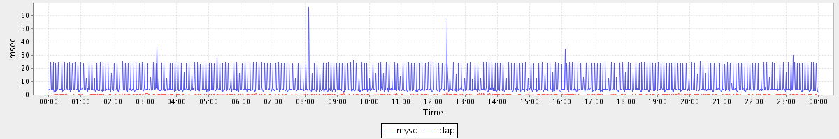 avg(mysql) = 0.21 avg(ldap) = 7.42