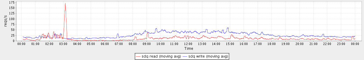 avg(sda read) = 1.04 avg(sda write) = 4.12