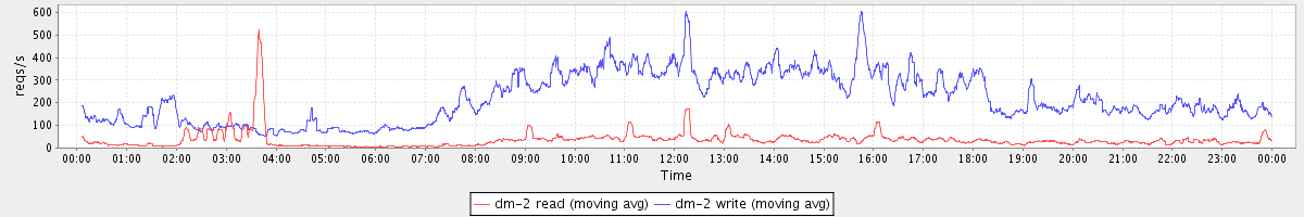 avg(dm-0 read) = 731.08 avg(dm-0 write) = 382.19