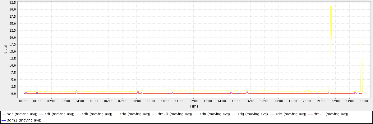 avg(sdc) = 0.08 avg(sdf) = 0.08 avg(sdk) = 0.00 avg(sda) = 1.14 avg(dm-0) = 0.16 avg(sdn) = 0.00 avg(sdg) = 0.00 avg(sdd) = 0.00 avg(dm-1) = 0.00 avg(sdm1) = 0.00