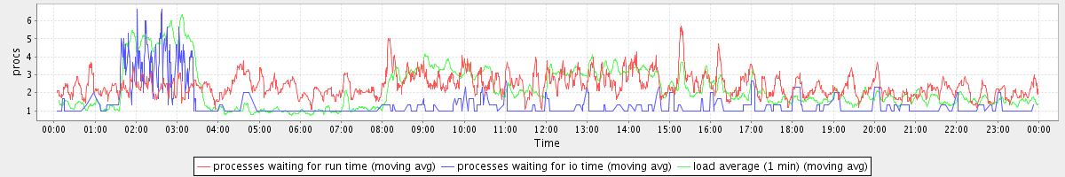 avg(processes waiting for run time) = 1.77 avg(processes waiting for io time) = 0.48 avg(load average (1 min)) = 2.20