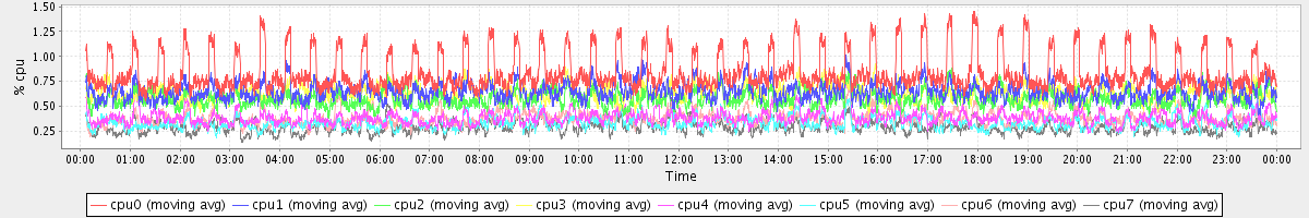 avg(cpu0) = 0.85 avg(cpu1) = 0.65 avg(cpu2) = 0.58 avg(cpu3) = 0.63 avg(cpu4) = 0.39 avg(cpu5) = 0.34 avg(cpu6) = 0.38 avg(cpu7) = 0.30