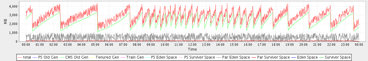 avg(total free) = 1807.38 avg(PS Old Gen free) = 0.00 avg(CMS Old Gen free) = 1299.84 avg(Tenured Gen free) = 0.00 avg(Train Gen free) = 0.00 avg(PS Eden Space free) = 0.00 avg(PS Survivor Space free) = 0.00 avg(Par Eden Space free) = 472.46 avg(Par Survivor Space free) = 35.08 avg(Eden Space free) = 0.00 avg(Survivor Space free) = 0.00