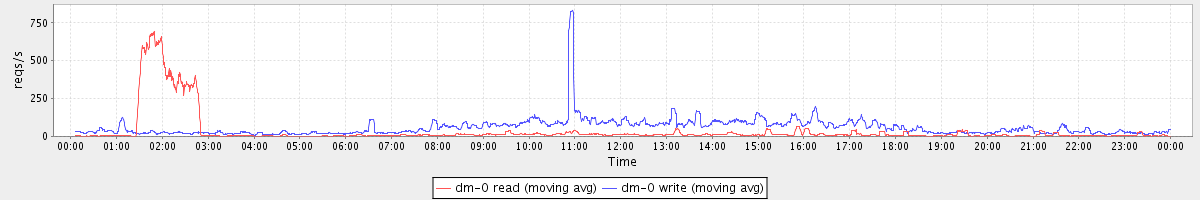 avg(dm-0 read) = 567.07 avg(dm-0 write) = 236.76