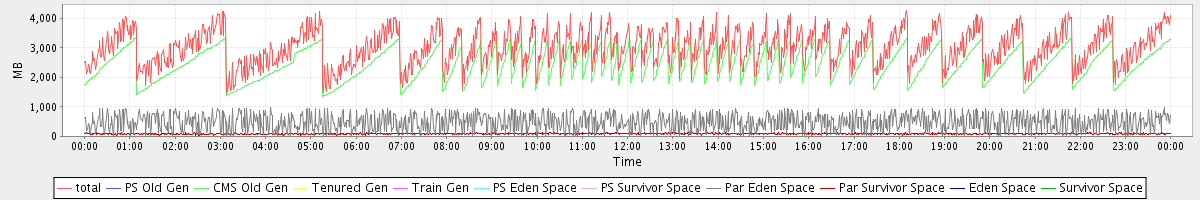 avg(total) = 3024.01 avg(PS Old Gen) = 0.00 avg(CMS Old Gen) = 2444.56 avg(Tenured Gen) = 0.00 avg(Train Gen) = 0.00 avg(PS Eden Space) = 0.00 avg(PS Survivor Space) = 0.00 avg(Par Eden Space) = 488.83 avg(Par Survivor Space) = 90.61 avg(Eden Space) = 0.00 avg(Survivor Space) = 0.00
