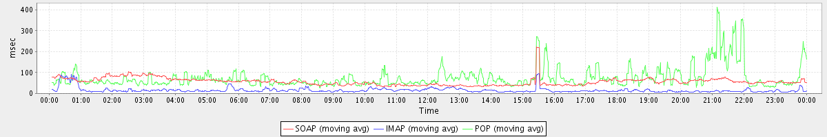 avg(IMAP) = 16.51 avg(IMAP SSL) = 1555.60 avg(POP) = 0.01 avg(POP SSL) = 65.60
