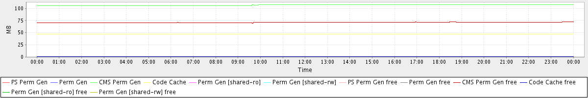 avg(PS Perm Gen) = 0.00 avg(Perm Gen) = 0.00 avg(CMS Perm Gen) = 106.90 avg(Code Cache) = 47.46 avg(Perm Gen [shared-ro]) = 0.00 avg(Perm Gen [shared-rw]) = 0.00 avg(PS Perm Gen free) = 0.00 avg(Perm Gen free) = 0.00 avg(CMS Perm Gen free) = 71.34 avg(Code Cache free) = 0.54 avg(Perm Gen [shared-ro] free) = 0.00 avg(Perm Gen [shared-rw] free) = 0.00