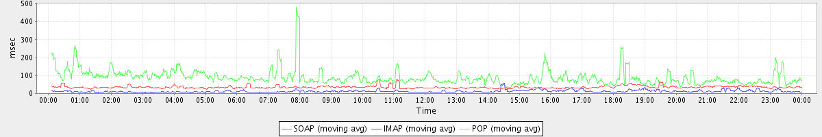 Host zm08.stanford.edu: Mailboxd: Response Time by Client Protocol