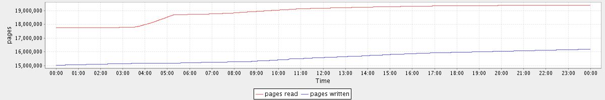 avg(pages read) = 18898335.43 avg(pages written) = 15585016.08