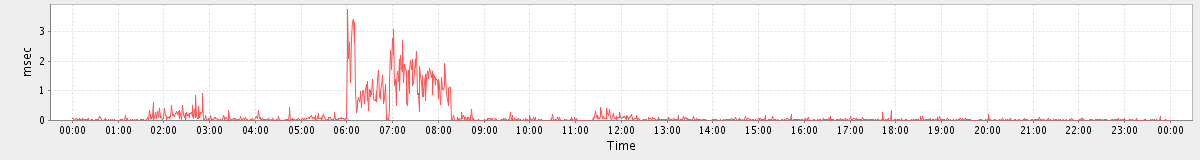 avg(ModifyAppointmentRequest) = 449.85 avg(RemoveAttachmentsRequest) = 236.00 avg(AutoCompleteRequest) = 498.31 avg(SendMsgRequest) = 239.19 avg(AutoCompleteGalRequest) = 246.89 avg(BackupQueryRequest) = 240.00 avg(GetFreeBusyRequest) = 840.00 avg(FolderActionRequest.empty) = 685.35 avg(BackupRequest) = 4180.00 avg(GetQuotaUsageRequest) = 1358.00