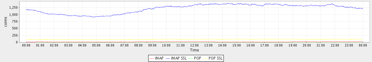 avg(IMAP) = 16.43 avg(IMAP SSL) = 1214.03 avg(POP) = 0.11 avg(POP SSL) = 106.57