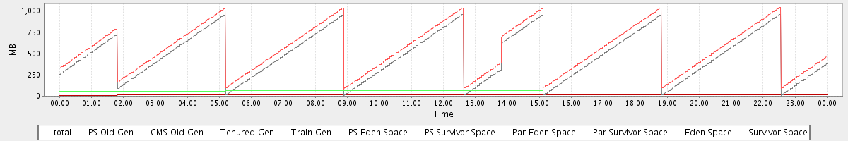 avg(total) = 554.72 avg(PS Old Gen) = 0.00 avg(CMS Old Gen) = 66.00 avg(Tenured Gen) = 0.00 avg(Train Gen) = 0.00 avg(PS Eden Space) = 0.00 avg(PS Survivor Space) = 0.00 avg(Par Eden Space) = 474.16 avg(Par Survivor Space) = 14.57 avg(Eden Space) = 0.00 avg(Survivor Space) = 0.00