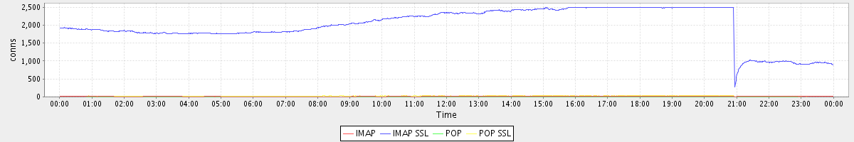 avg(IMAP) = 13.51 avg(IMAP SSL) = 1996.83 avg(POP) = 0.01 avg(POP SSL) = 24.64