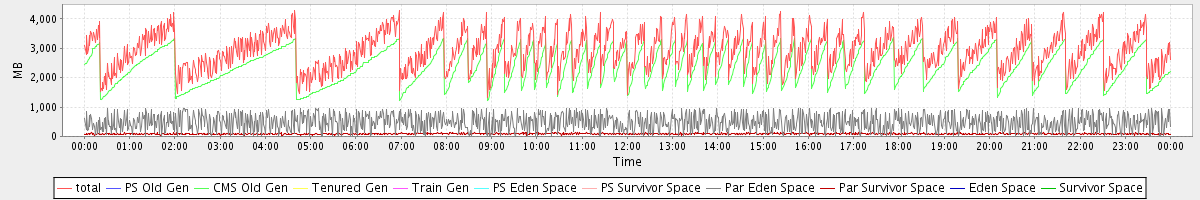 avg(total) = 2929.65 avg(PS Old Gen) = 0.00 avg(CMS Old Gen) = 2354.83 avg(Tenured Gen) = 0.00 avg(Train Gen) = 0.00 avg(PS Eden Space) = 0.00 avg(PS Survivor Space) = 0.00 avg(Par Eden Space) = 486.13 avg(Par Survivor Space) = 88.69 avg(Eden Space) = 0.00 avg(Survivor Space) = 0.00
