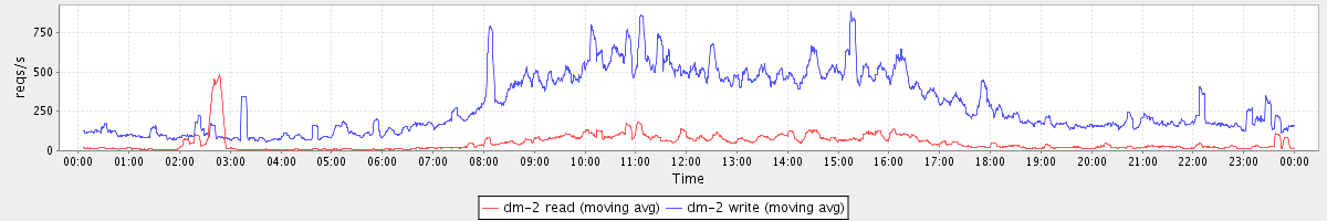 avg(dm-0 read) = 638.50 avg(dm-0 write) = 489.93