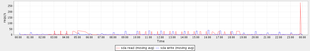 avg(sda1 read) = 20.19 avg(sda1 write) = 380.23