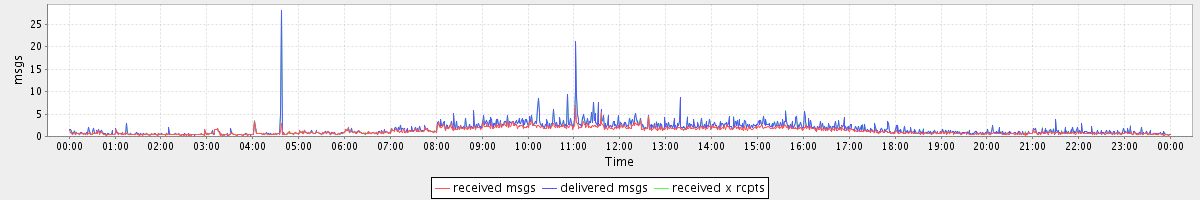 avg(received msgs) = 1.21 avg(delivered msgs) = 1.64 avg(received x rcpts) = 1.65