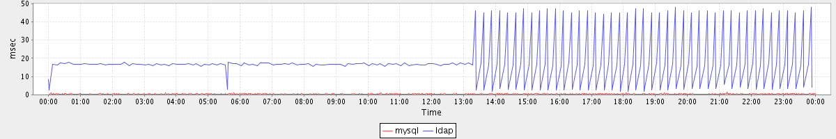 avg(mysql) = 0.34 avg(ldap) = 3.18