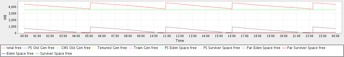 avg(total free) = 4179.73 avg(PS Old Gen free) = 0.00 avg(CMS Old Gen free) = 3590.99 avg(Tenured Gen free) = 0.00 avg(Train Gen free) = 0.00 avg(PS Eden Space free) = 0.00 avg(PS Survivor Space free) = 0.00 avg(Par Eden Space free) = 477.97 avg(Par Survivor Space free) = 110.78 avg(Eden Space free) = 0.00 avg(Survivor Space free) = 0.00