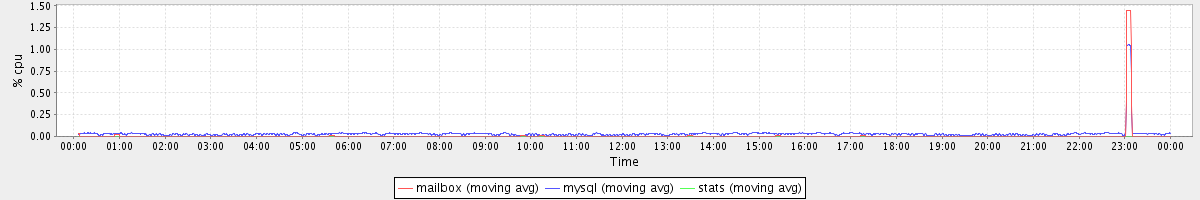 avg(mailbox) = 0.01 avg(mysql) = 0.03 avg(stats) = 0.00