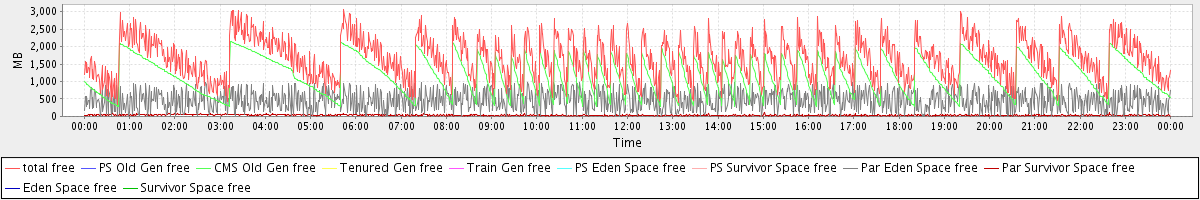 avg(total free) = 1659.94 avg(PS Old Gen free) = 0.00 avg(CMS Old Gen free) = 1159.23 avg(Tenured Gen free) = 0.00 avg(Train Gen free) = 0.00 avg(PS Eden Space free) = 0.00 avg(PS Survivor Space free) = 0.00 avg(Par Eden Space free) = 466.16 avg(Par Survivor Space free) = 34.55 avg(Eden Space free) = 0.00 avg(Survivor Space free) = 0.00