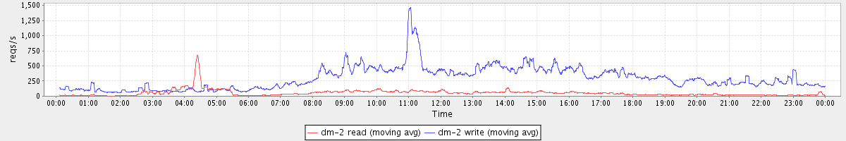 avg(dm-0 read) = 1103.85 avg(dm-0 write) = 365.52