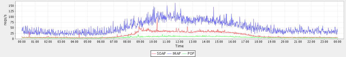 Host zm07.stanford.edu: Mailboxd: Request Rate by Client Protocol