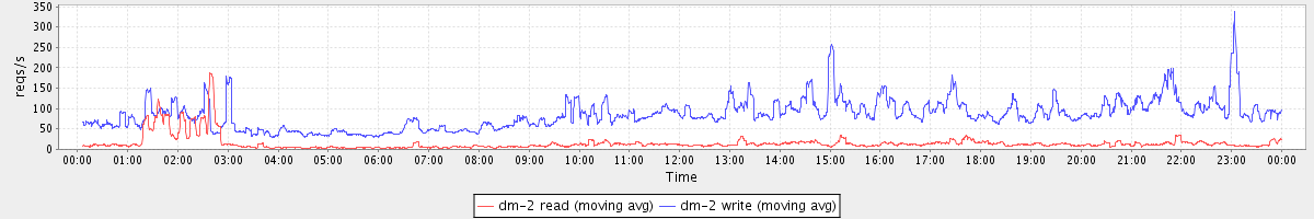 avg(dm-2 read) = 185.50 avg(dm-2 write) = 634.11