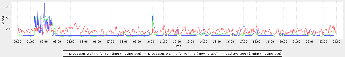 avg(processes waiting for run time) = 1.16 avg(processes waiting for io time) = 0.32 avg(load average (1 min)) = 1.33