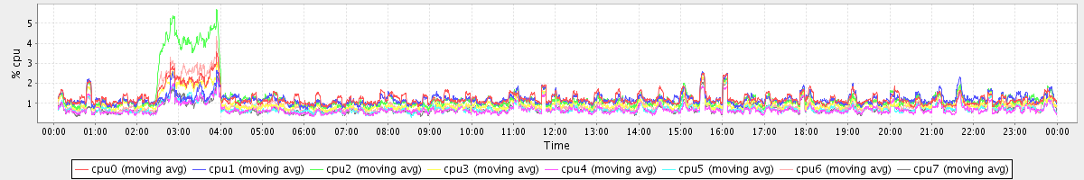 avg(cpu0) = 0.07 avg(cpu1) = 0.01 avg(cpu2) = 0.03 avg(cpu3) = 0.00 avg(cpu4) = 0.00 avg(cpu5) = 0.00 avg(cpu6) = 0.02 avg(cpu7) = 0.00