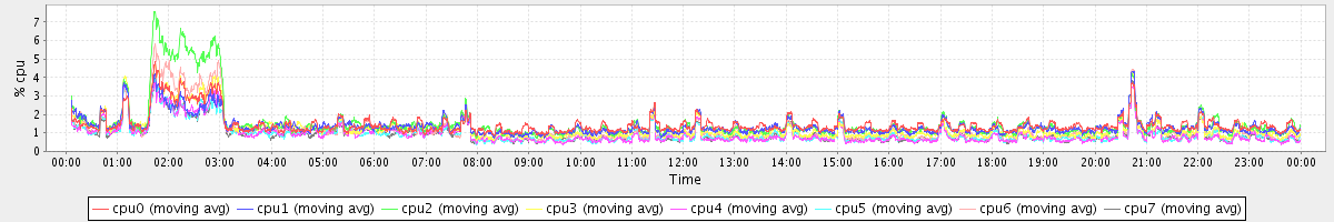 avg(cpu0) = 0.08 avg(cpu1) = 0.01 avg(cpu2) = 0.03 avg(cpu3) = 0.01 avg(cpu4) = 0.00 avg(cpu5) = 0.00 avg(cpu6) = 0.01 avg(cpu7) = 0.00