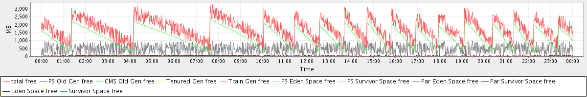 avg(total free) = 1769.53 avg(PS Old Gen free) = 0.00 avg(CMS Old Gen free) = 1240.12 avg(Tenured Gen free) = 0.00 avg(Train Gen free) = 0.00 avg(PS Eden Space free) = 0.00 avg(PS Survivor Space free) = 0.00 avg(Par Eden Space free) = 485.97 avg(Par Survivor Space free) = 43.44 avg(Eden Space free) = 0.00 avg(Survivor Space free) = 0.00