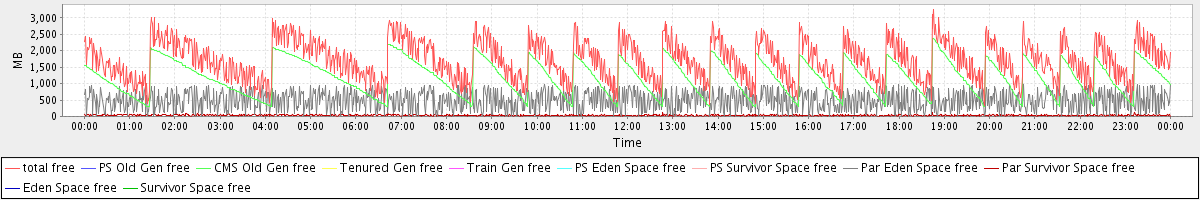 avg(total free) = 1701.86 avg(PS Old Gen free) = 0.00 avg(CMS Old Gen free) = 1182.79 avg(Tenured Gen free) = 0.00 avg(Train Gen free) = 0.00 avg(PS Eden Space free) = 0.00 avg(PS Survivor Space free) = 0.00 avg(Par Eden Space free) = 484.99 avg(Par Survivor Space free) = 34.08 avg(Eden Space free) = 0.00 avg(Survivor Space free) = 0.00