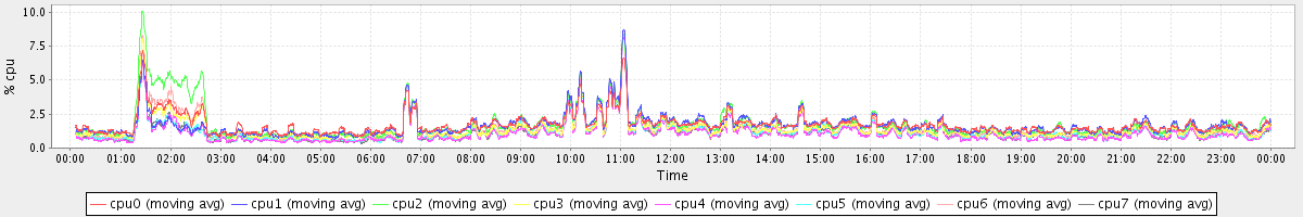 avg(cpu0) = 0.11 avg(cpu1) = 0.03 avg(cpu2) = 0.05 avg(cpu3) = 0.01 avg(cpu4) = 0.00 avg(cpu5) = 0.00 avg(cpu6) = 0.03 avg(cpu7) = 0.00